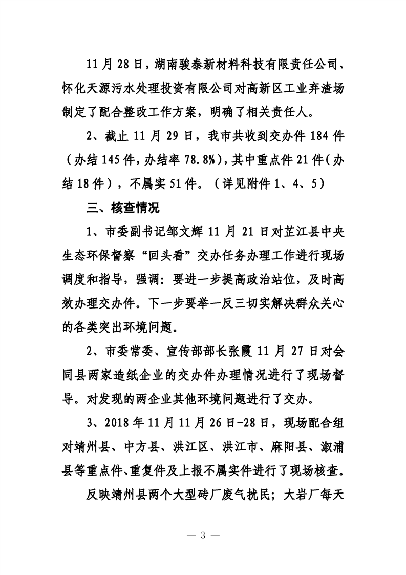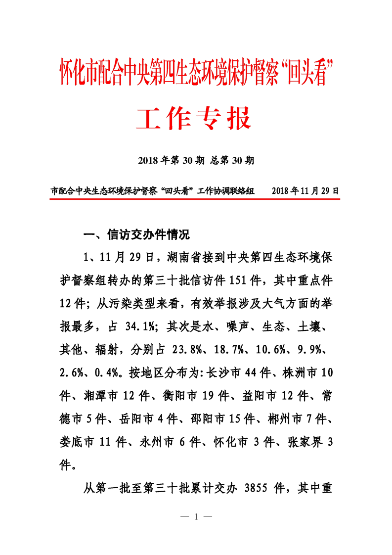 第三十期 懷化市配合中央生態環境督察回頭看工作專報