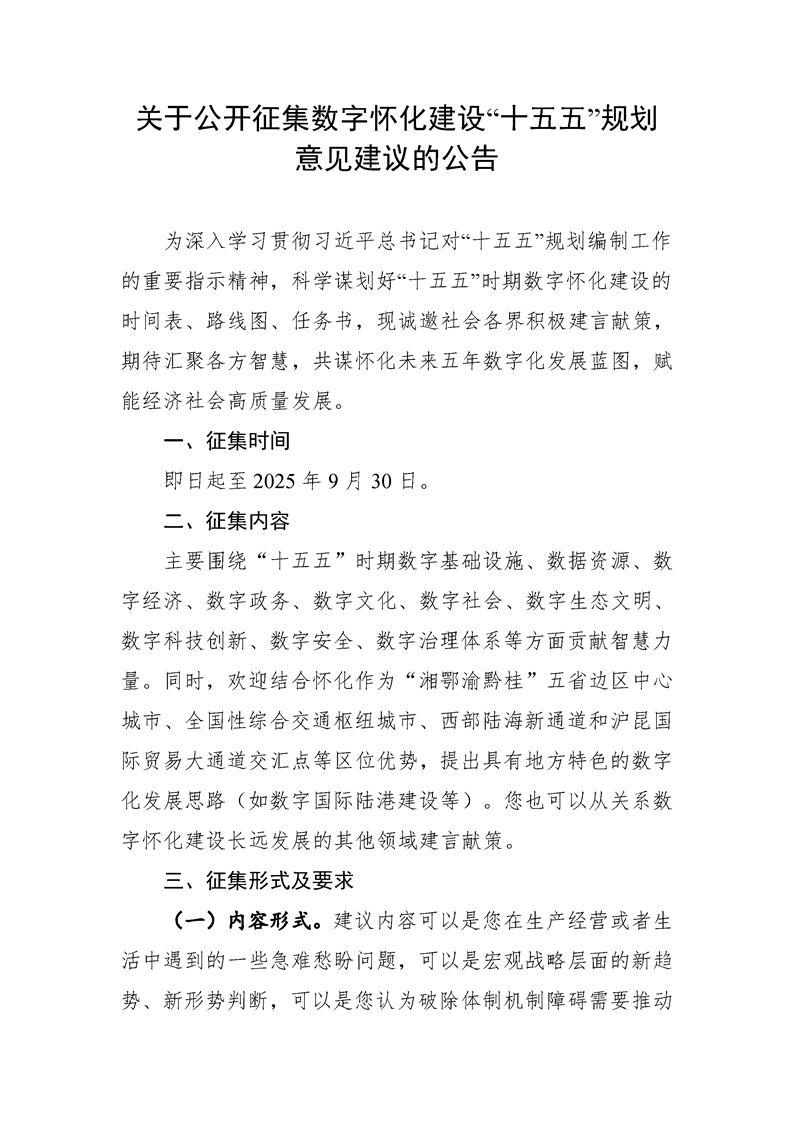 關于公開征集數字懷化建設“十五五”規劃意見建議的公告