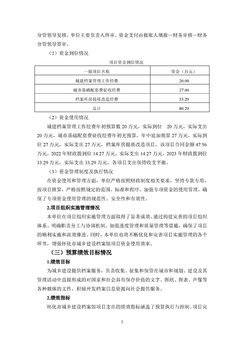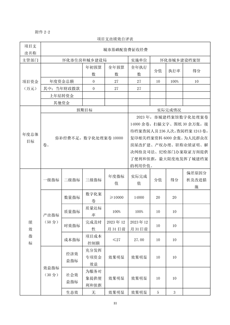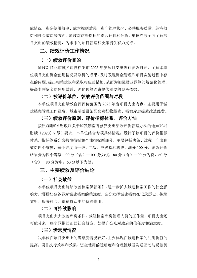 懷化市城鄉建設檔案館2023年項目支出績效自評報告