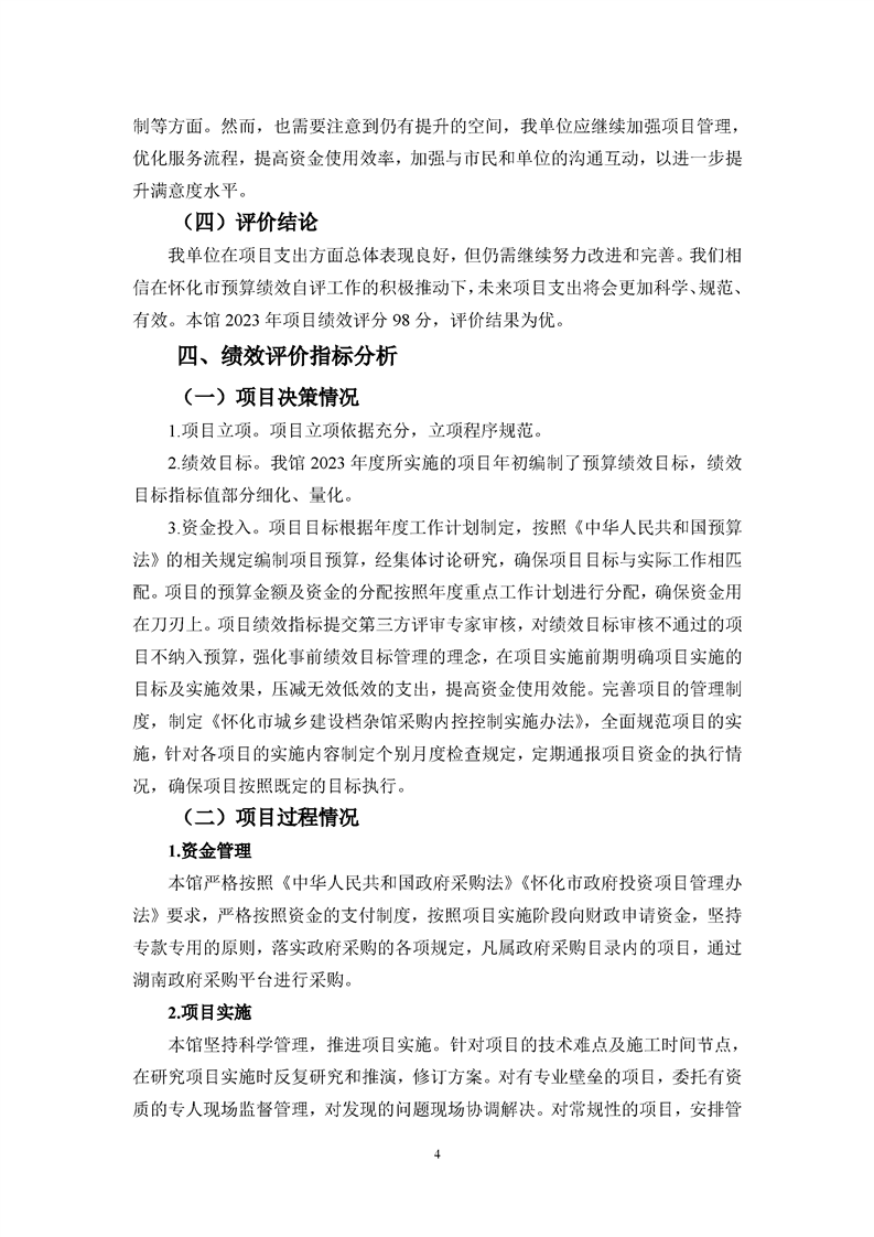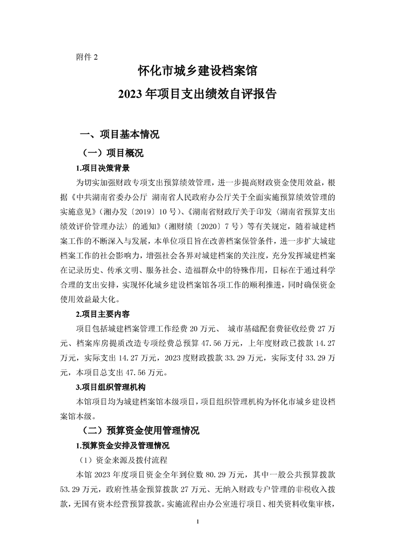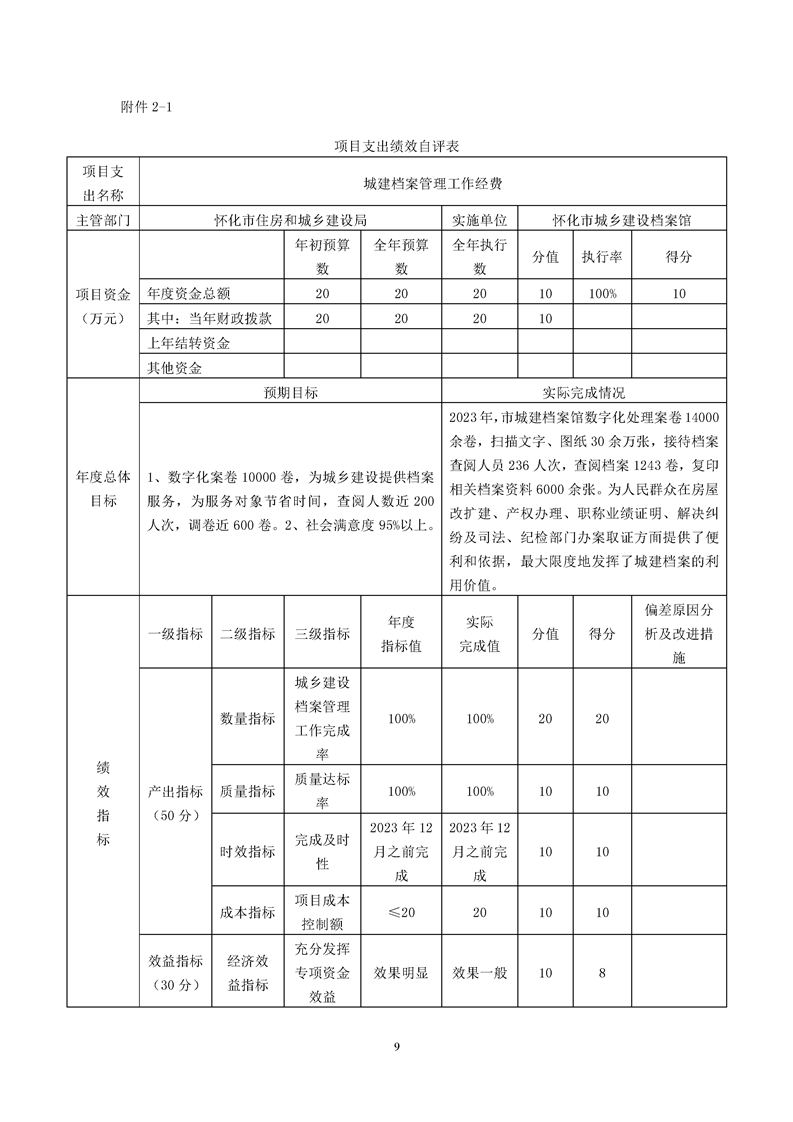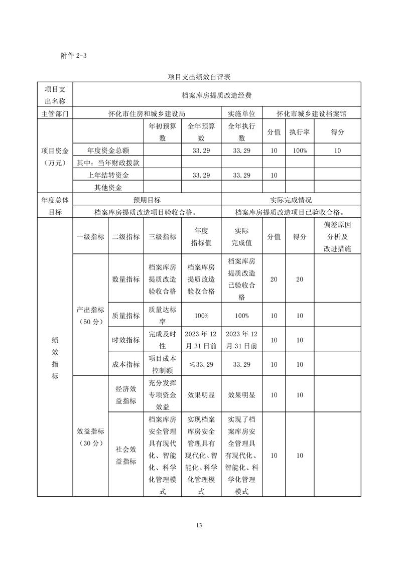 懷化市城鄉建設檔案館2023年項目支出績效自評報告